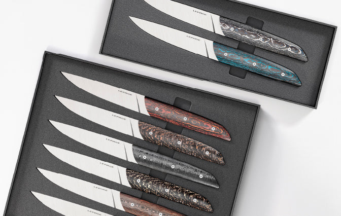 L’équipe du couteau Lepage a été constituée autour d’un objectif ambitieux : créer et fabriquer en France le meilleur couteau de table pour la dégustation. Ergonomie, équilibre, design élégant et intemporel, lame en acier haut de gamme inoxydable Sandvik fabriquée à Thiers, matières de manches artisanales, artistiques et hi-tech.