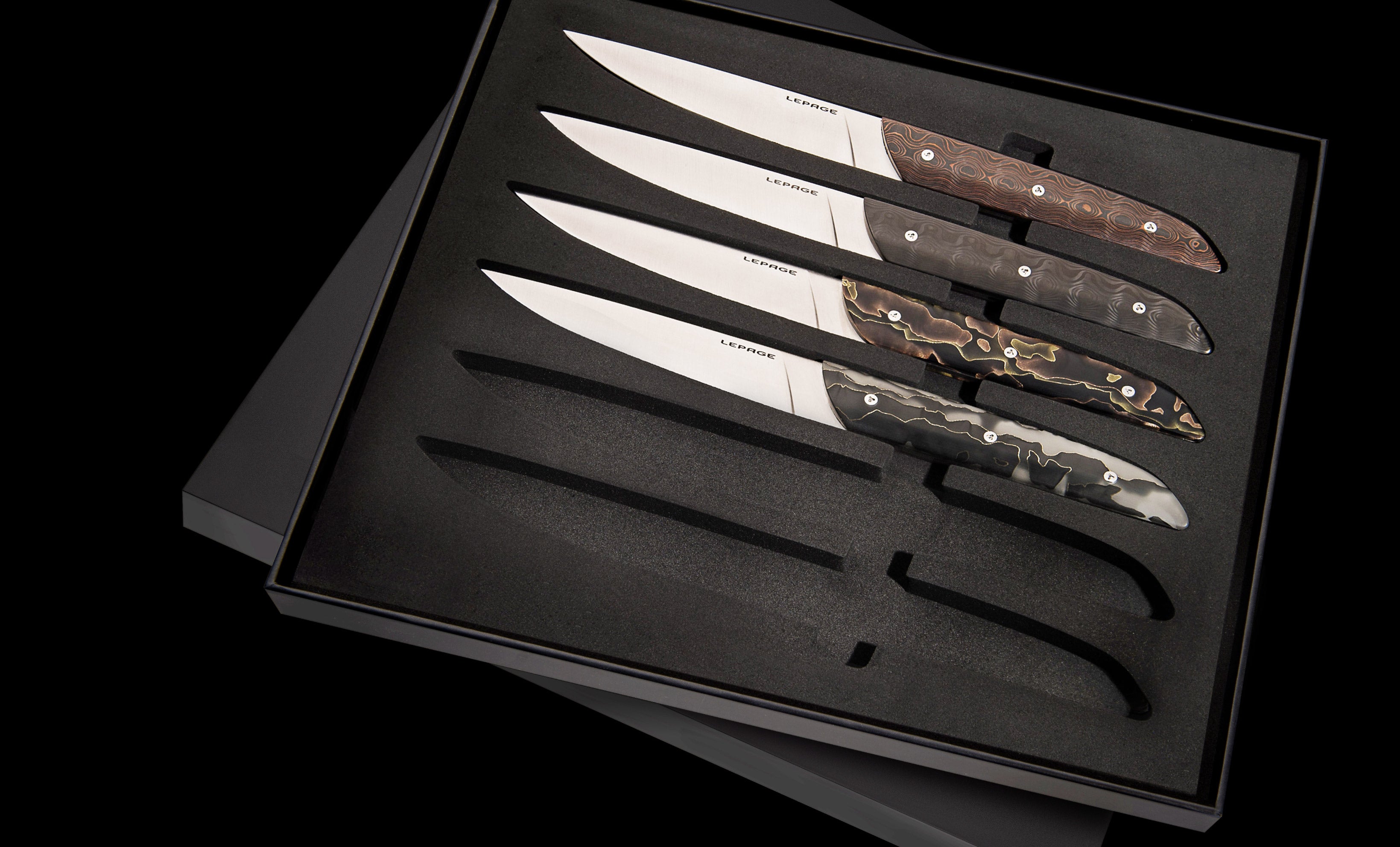 L’équipe du couteau Lepage a été constituée autour d’un objectif ambitieux : créer et fabriquer en France le meilleur couteau de table pour la dégustation. Ergonomie, équilibre, design élégant et intemporel, lame en acier haut de gamme inoxydable Sandvik fabriquée à Thiers, matières de manches artisanales, artistiques et hi-tech.