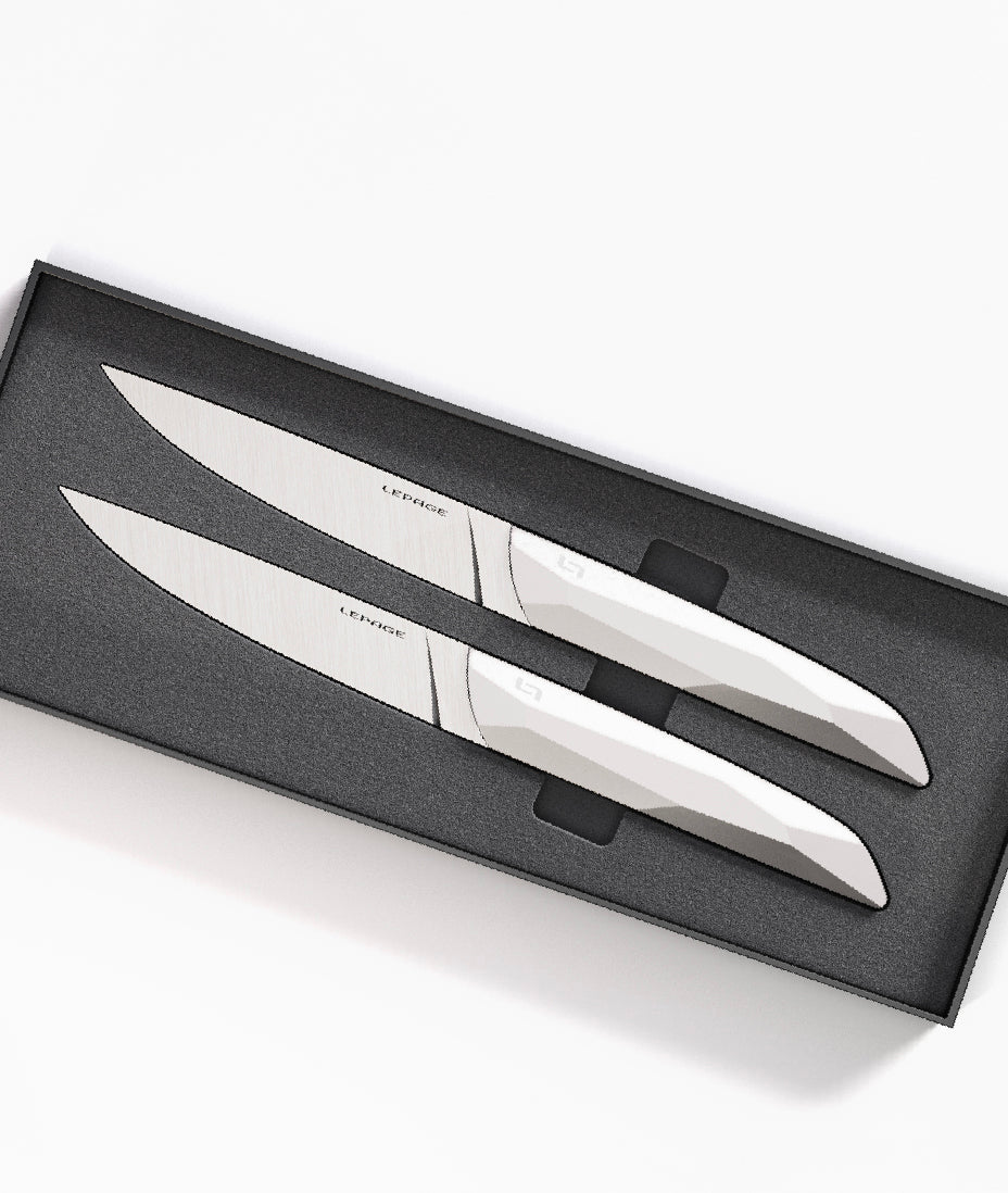 Deux couteaux Le 55 blanc satin en acier inoxydable