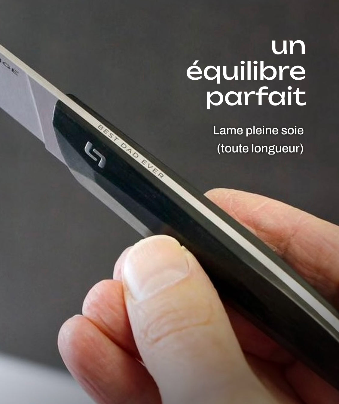 • Lame en acier 14C28N Sandvik, découpée et montée à Thiers